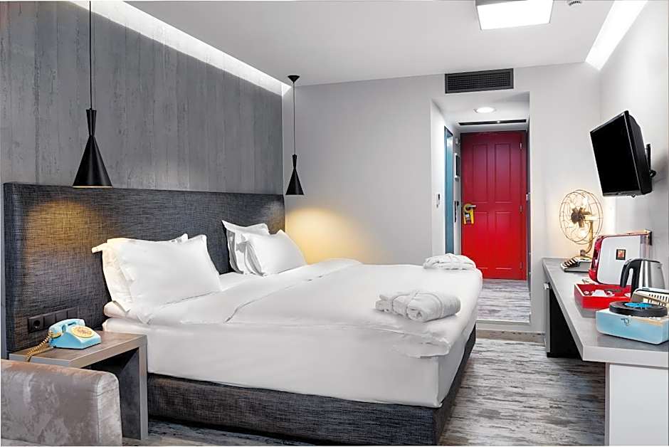Fitted with a walk-in shower and elements of industrial decoration, this air-conditioned room has a seating area with sofa and satellite TV. It has a mini fridge and free WiFi access.